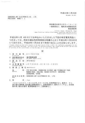 日本PSE认证证书标准:J60065(H23)and J55013(H22)