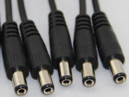 适配器DC插头连接方式为两只叉型接触弹片定位在基座中心部位(音叉式DC头)或一个光滑的空心金属圆柱体定位在基座中心部位(直插式DC头)成纵横向排列互不相连。外露在绝缘基座圆柱体外面的同样为一个空心金属圆柱体(音叉式和直插式DC头外露金属连接部分没有差别),由此与插座内外连接使其通电供给与其供电之产品导通并供电,使之正常工作